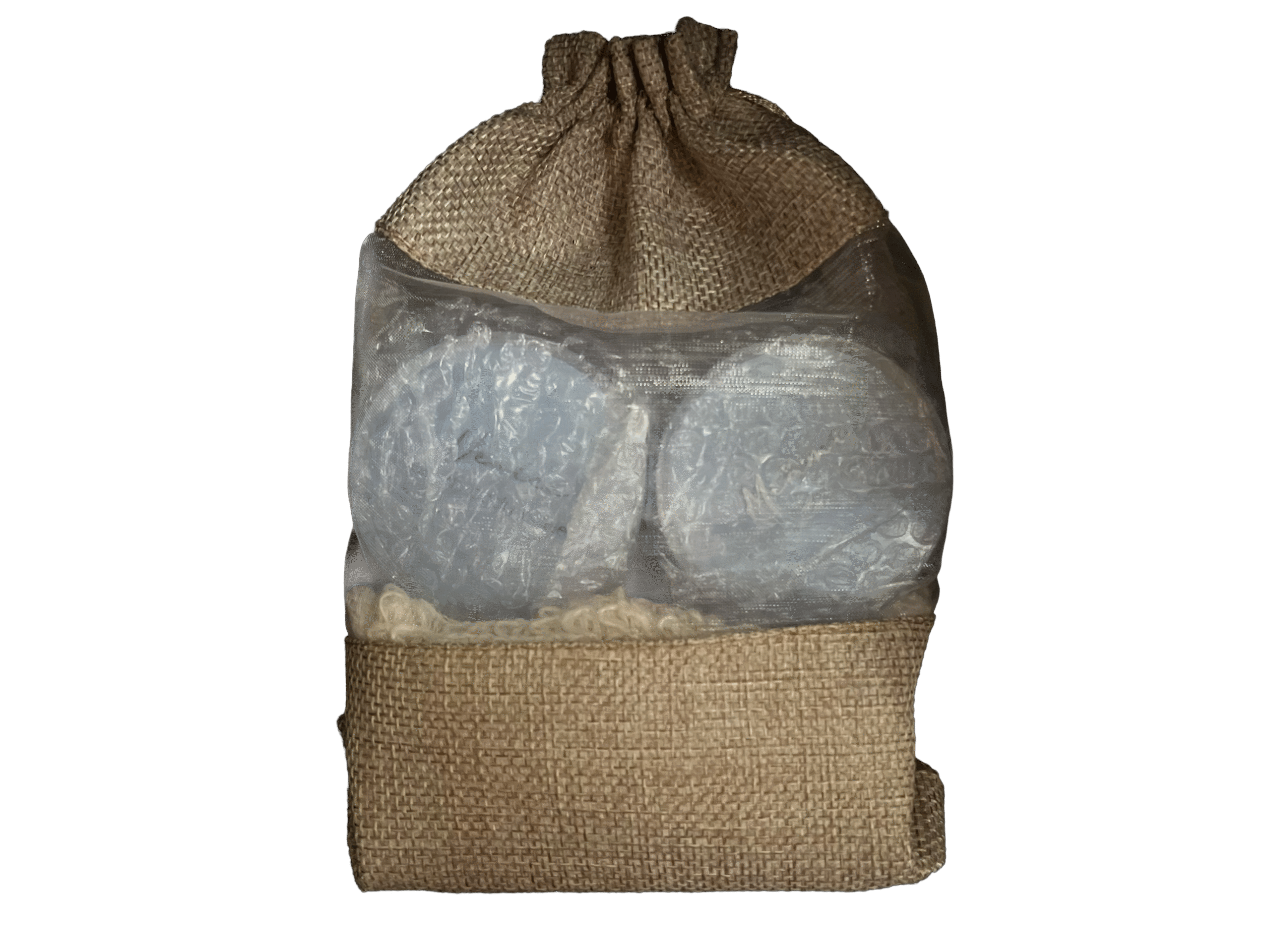 A stylish burlap bag with a sheer window so you can see the beautiful contents inside.